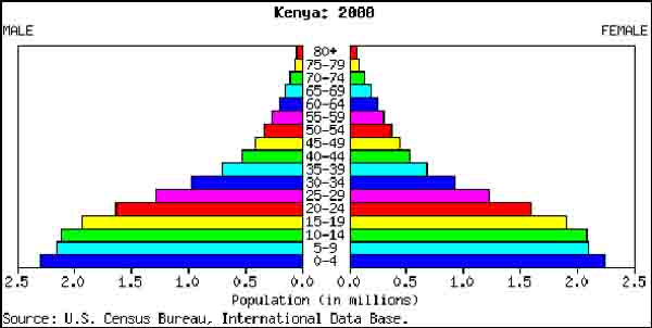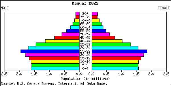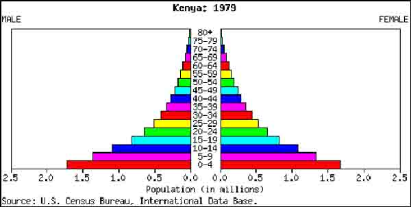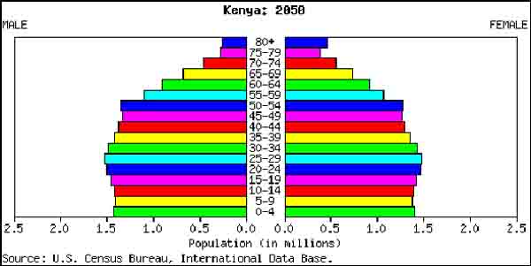 Кения, 1979, 2000 (оценки), 2025 и 2050 (прогнозы) годы |